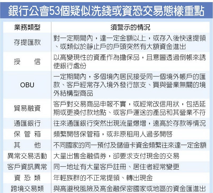 彙整銀行間具共通性之疑似不法或顯屬異常交易態樣